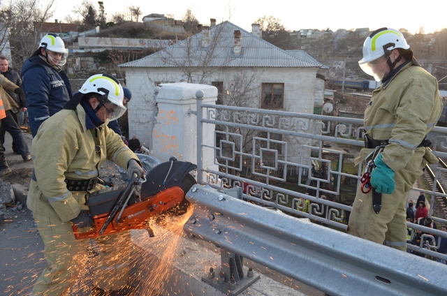 Сегодня в Севастополе с железнодорожного моста упал грузовой автомобиль «Мерседес». Об этом сообщила пресс-служба Управления ГСЧС в АРК.