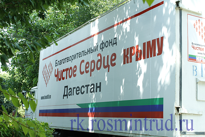 В качестве гуманитарной помощи Симферопольский гериатрический интернат получил продукты, телевизоры, ноутбук, холодильники, средства гигиены. Машина с гуманитарной помощью преодолела расстояние около 1500 километров. В состав делегации из Дагестана также вошел ансамбль лезгинки, который организовал концерт для подопечных пансионата.
