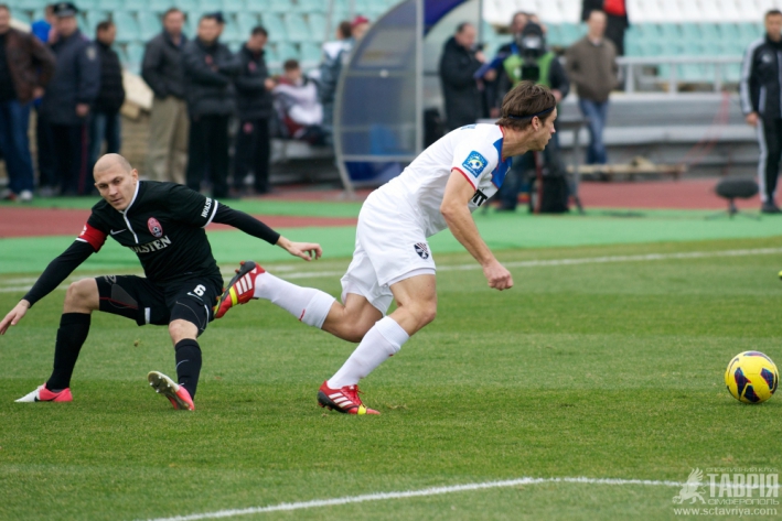 В первом тайме команды играли на равных, нападающий «Таврии» Максим Фещук не смог реализовать голевой момент, созданный по ошибке голкипера «Зари». Во втором тайме преимущество было у «Зари», однако безрезультатно – вратарь симферопольской команды Дамир Кахриман неоднократно спасал ворота. В последние 20 минут «Таврия» ушла в оборону, были заменены нападающие Владимир Коробка и Максим Фещук, полузащитник Сергей Назаренко. За это время луганской команде не удалось подобраться к штрафной площадке.