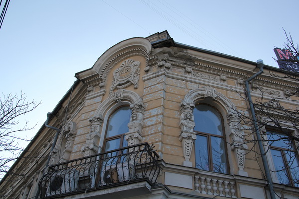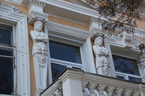 В центре города можно встретить два здания, где женские фигуры обрамляют оконные проемы. Одно из них – знаменитое фотоателье на улице Пушкина, о предназначении которого можно узнать по надписи «Фотографiя» на аттике. Вот уже целый век здание сохраняет свою специализацию.