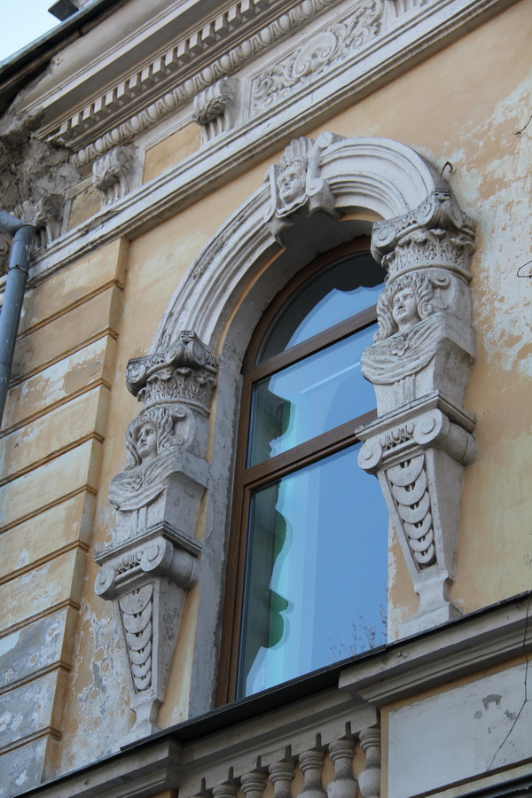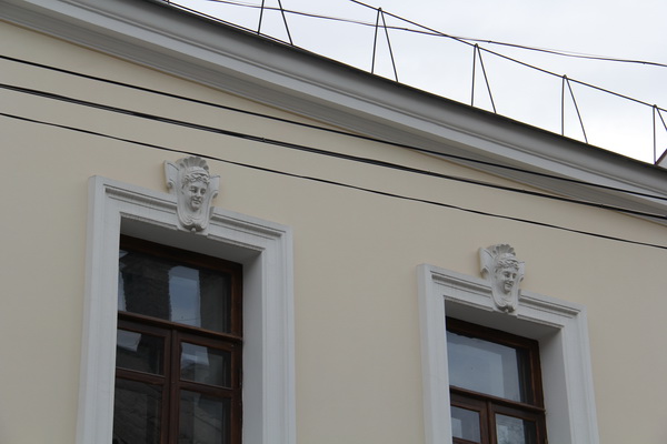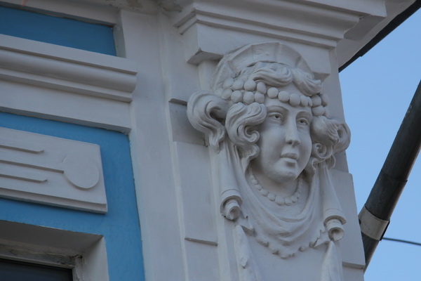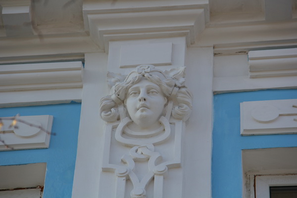 Женские лица в конце XIX века были распространенным элементом украшения зданий в мещанском стиле. У кого-то из скульпторов они получались удачными, например, вот эти детализированные лица на «масонском» здании улицы Пушкина.