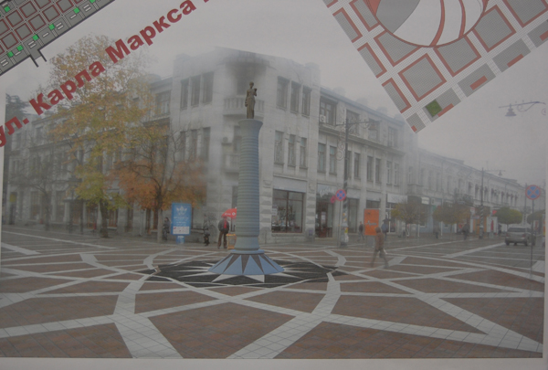 В рамках реконструкции планируется заменить плитку тротуарного и дорожного мощения, которая будет выполнена на одном уровне, то есть без отделения тротуарной части. На перекрестах улиц Карла Маркса и Горького с улицей Пушкина будет произведено мощение в виде розетки, а на первом перекрестке – установлена стела. «Значение стелы в данный момент обговаривается, есть многочисленные предложения от скульпторов, художников, которые буду рассмотрены в ходе завершения работ по согласованию проектной документации», – пояснил автор проекта. Кроме того, существует вероятность, что вместо стелы на этом месте будет установлена иная архитектурная форма, например памятный знак городов-побратимов.