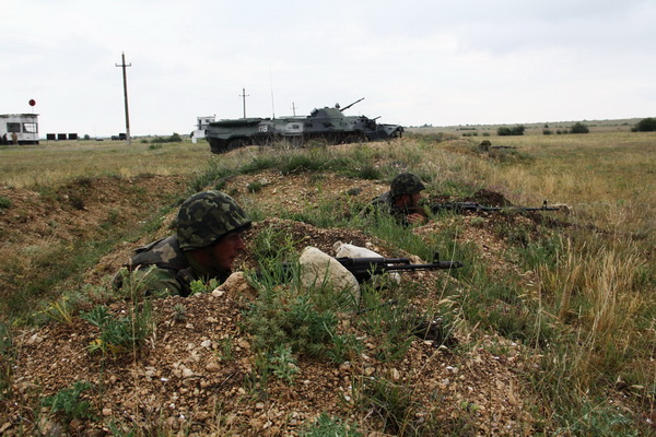 В условиях максимально приближенных к боевым личный состав проводит занятия по тактической подготовке по тематике «Взвод в боевом охранении». Также морпехи проводят этап боевой стрельбы из всего штатного вооружения взвода морской пехоты – АГС 17, вооружения БТР80 и легкого стрелкового оружия. Стрельба ведется по мишеням расположенным на пяти разных рубежах. По дальним рубежам, где сосредоточилась группа пехоты – работает автоматический гранатомет станковый, по бронегруппе противника – вооружение БТР и противотанковые гранатометы, по живой силе противника стрелковое оружие.