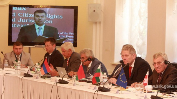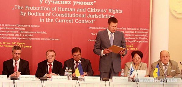 От имени Председателя Совета министров Крыма Анатолия Могилева участников конференции поприветствовал заместитель главы крымского правительства Георгий Псарев. Он подчеркнул, что для совершенствования механизмов защиты граждан в Украине реализуется реформа судебной системы, вводится прозрачная и объективная процедура отбора судей и качественно новая модель уголовного производства. По поручению Президента, в Украине создана и успешно работает Конституционная Ассамблея. В разработке предложений по внесению изменений в Конституцию участвуют ведущие специалисты в сфере конституционного права, эксперты, представители общественных организаций, органов местного самоуправления.