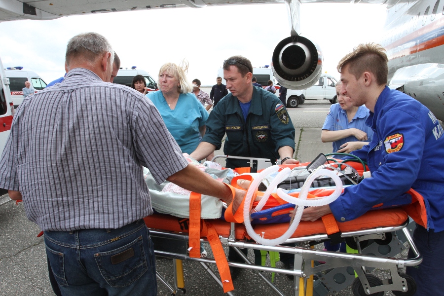 Из них трое – маленькие дети 7, 10 месяцев и годовалый ребенок. Двое из них находятся на аппарате искусственной вентиляции легких. В Крым специально для подготовки пациентов и их транспортировки прибыли врачи отряда «Центроспас» МЧС России, а также доктора из медицинских учреждений, куда они будут направлены. В полете маленьких пациентов сопровождают родители и доктора-реаниматологи.